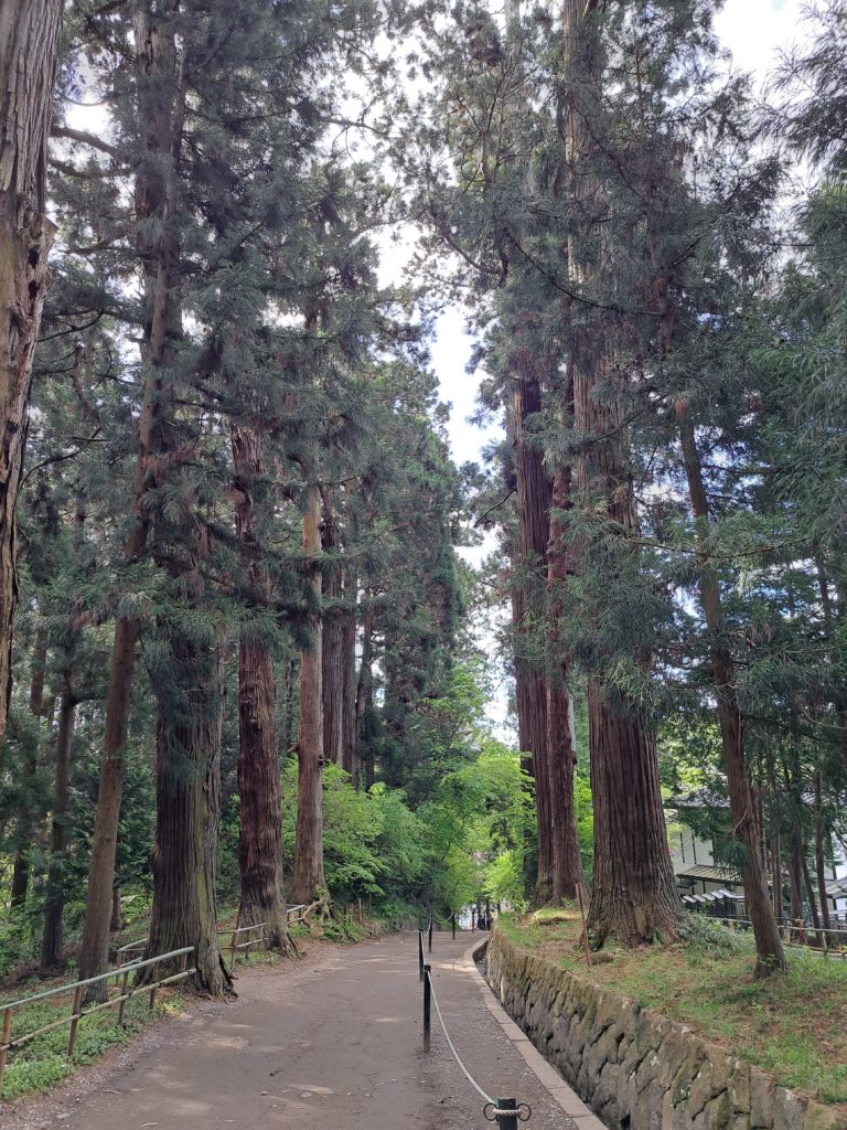 坂は少し勾配がキツいですが両脇に杉?が