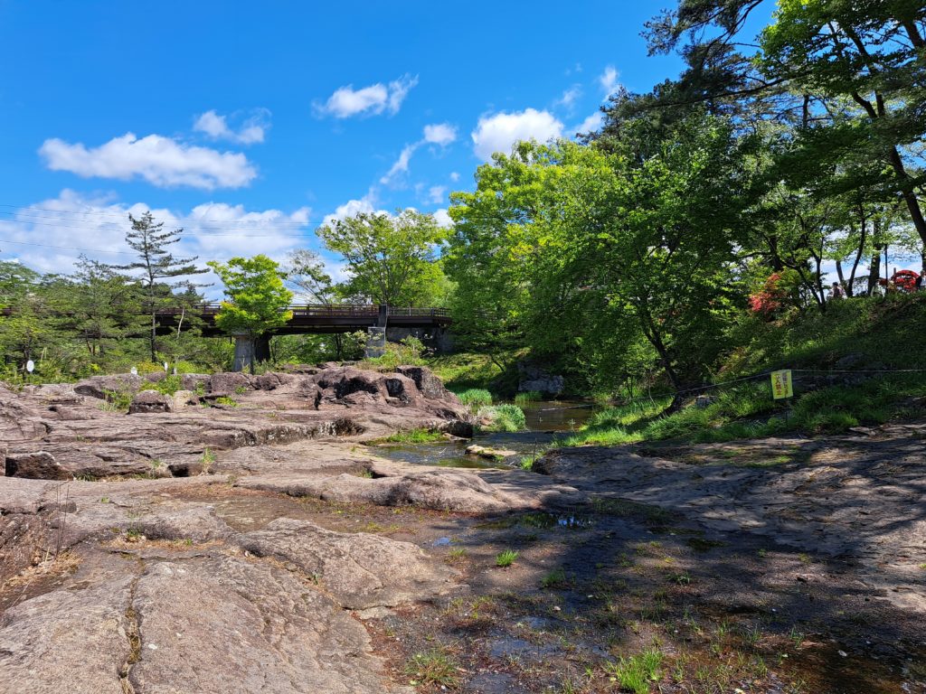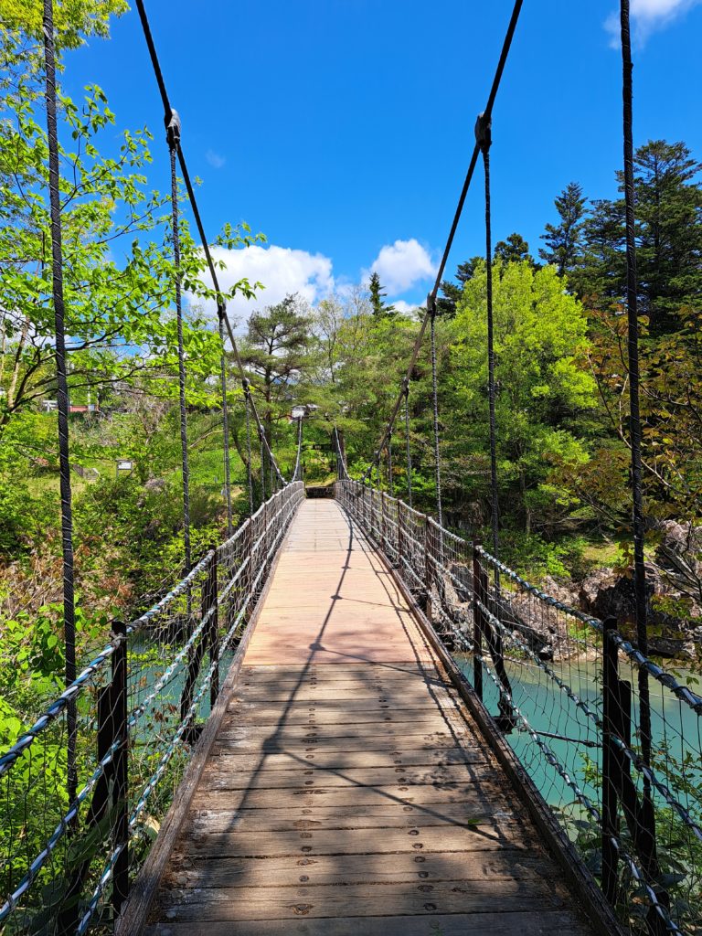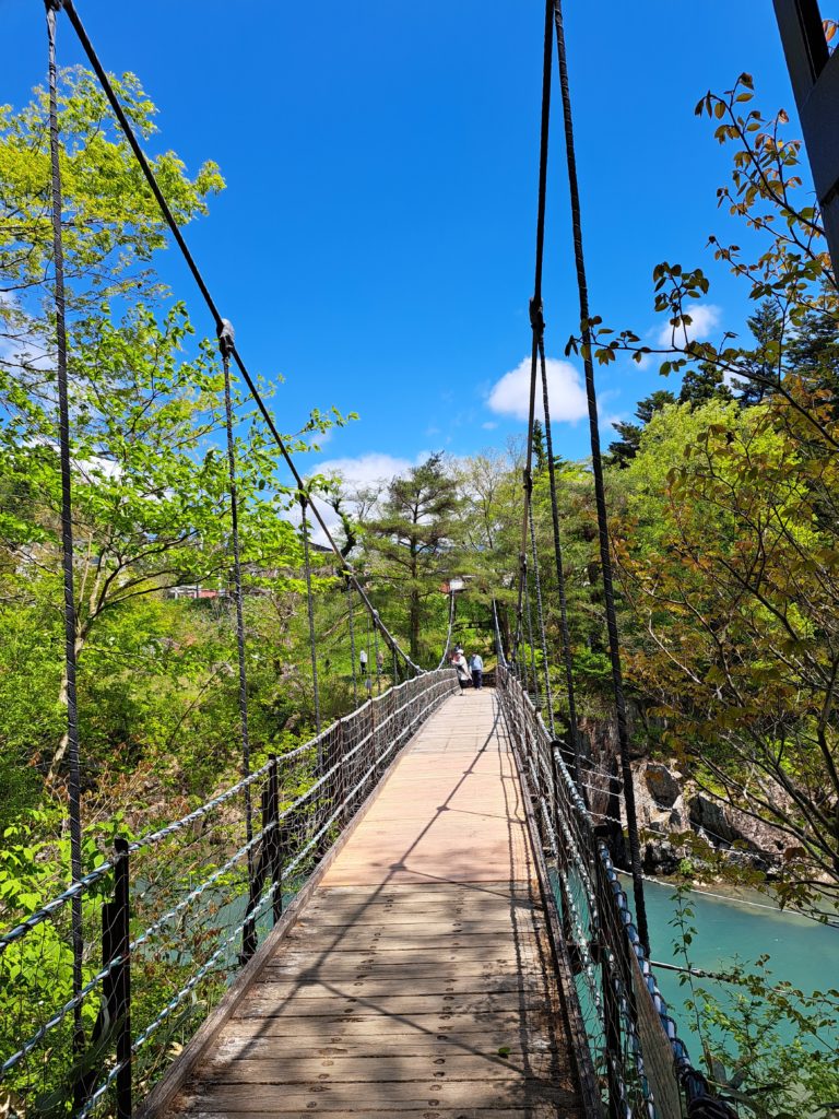 歩くこと5分程度で厳美溪の吊り橋へ到着です👣