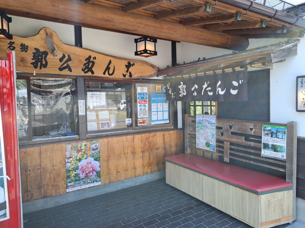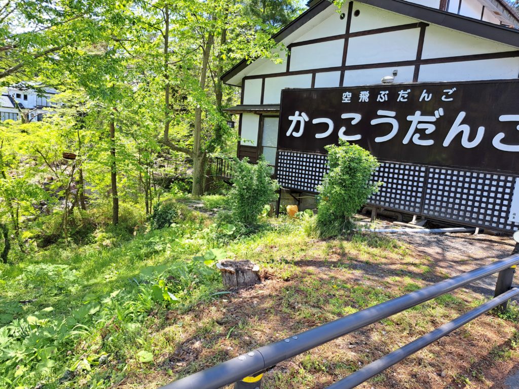 対面の高い位置にある団子屋さんから