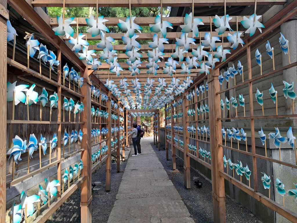 拝殿の脇には涼しげな風車のトンネルや