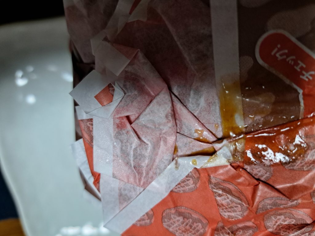 てりやきのタレが包装からはみ出てます💧