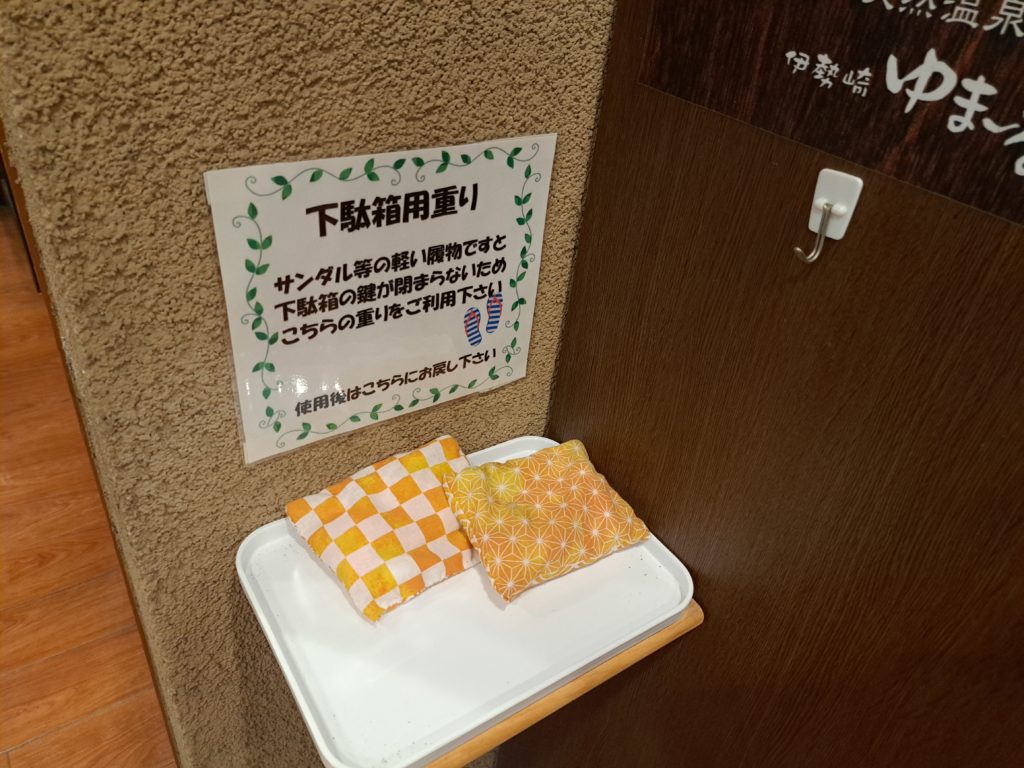 下駄箱に鍵をかけフロントに鍵を渡すと
