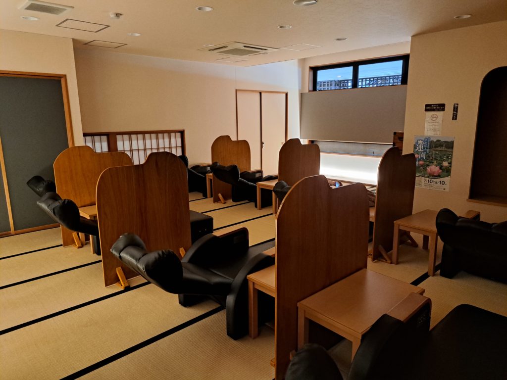リクライニングシートのある休憩所が