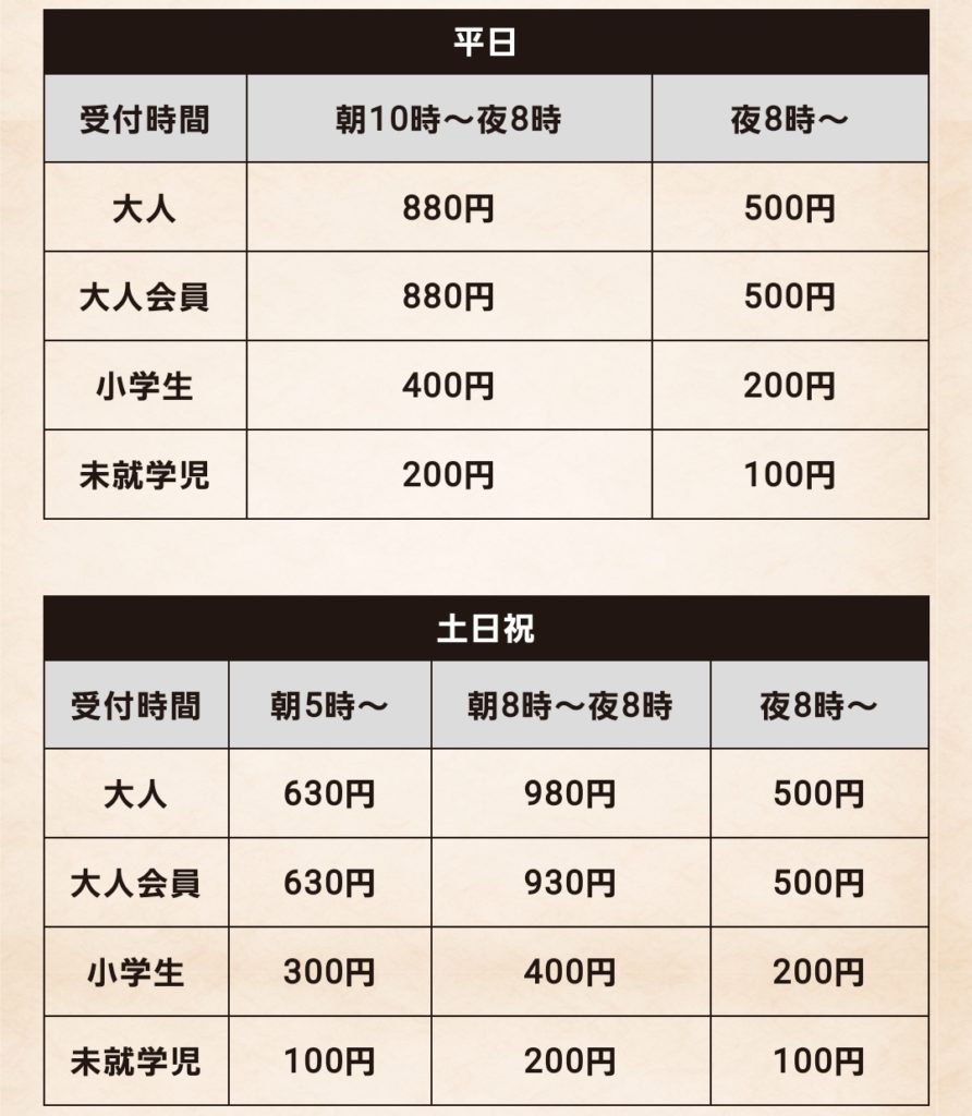 土日祝は朝風呂(早朝5時~)がお得で通常