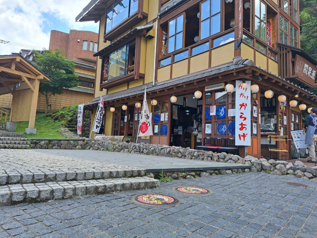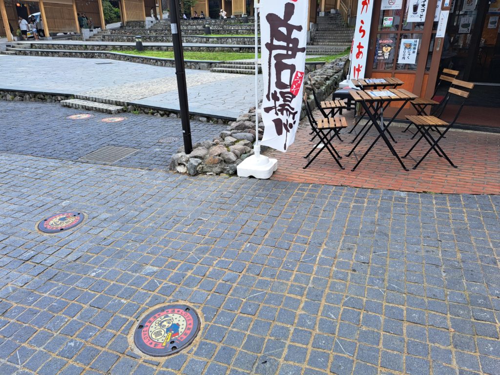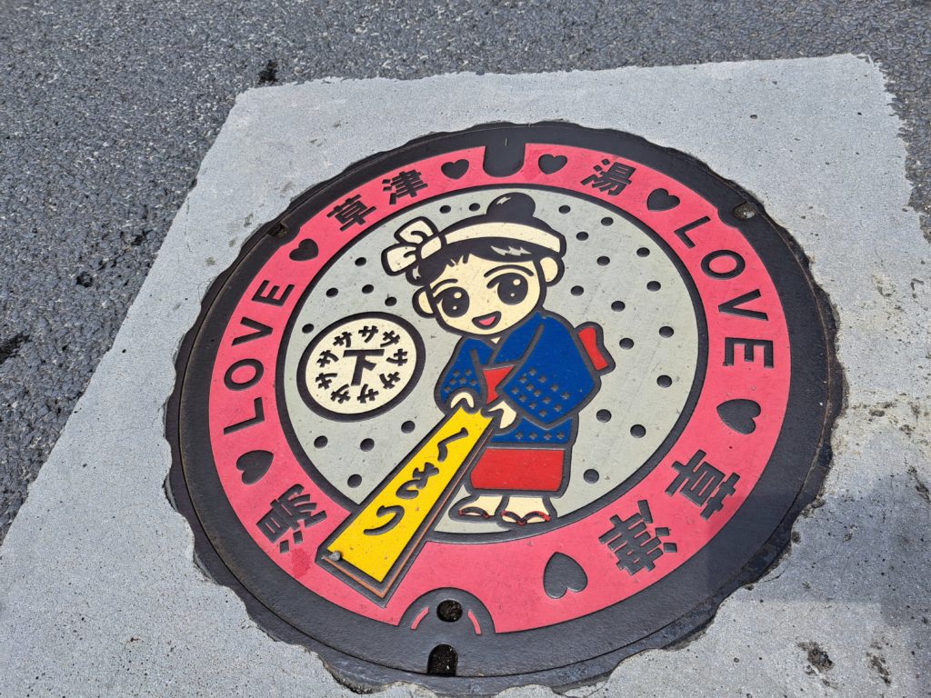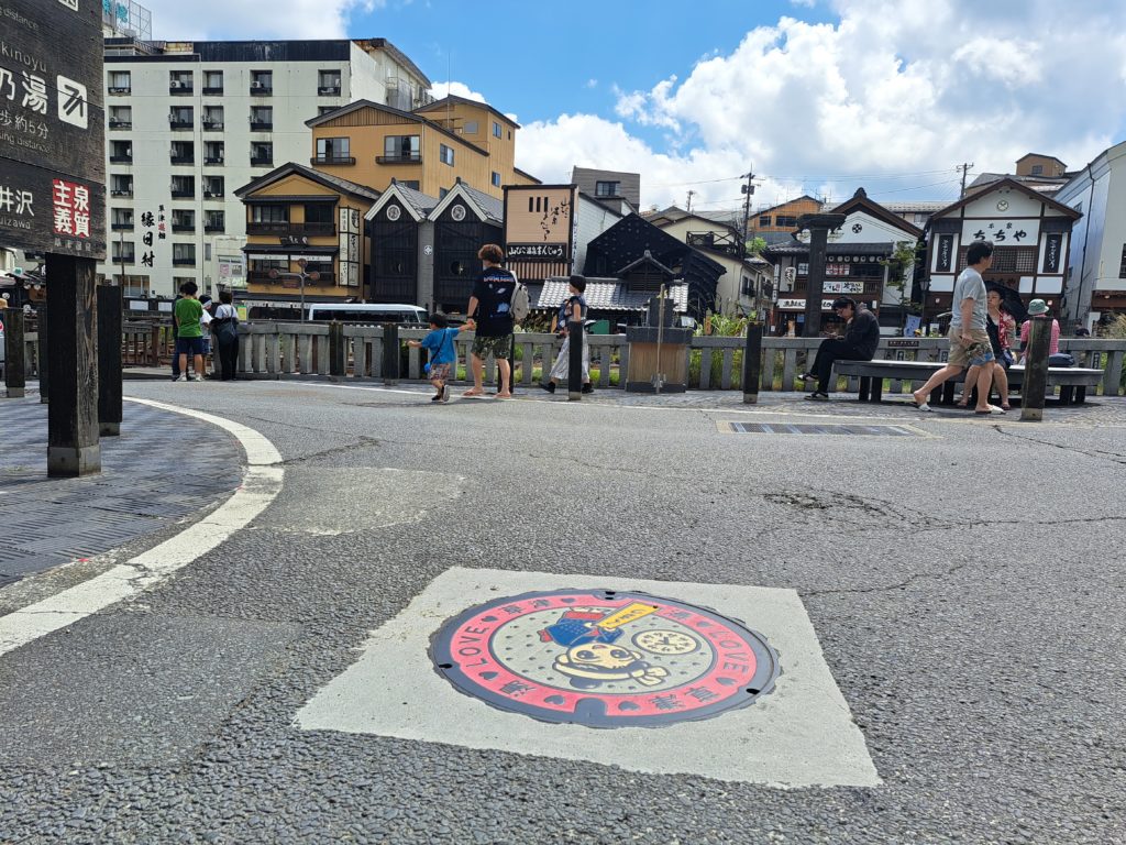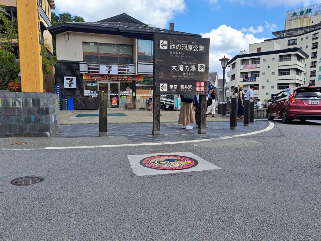 マンホール蓋が湯畑セブンイレブン前に設置されています