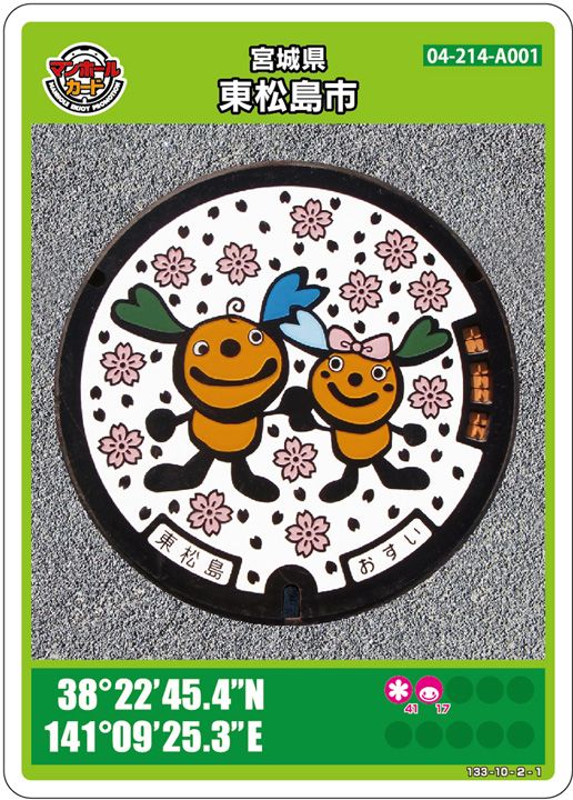 市町村→設置されてる市町村///デザイン→マンホールカードのデザイン///座標→設置場所