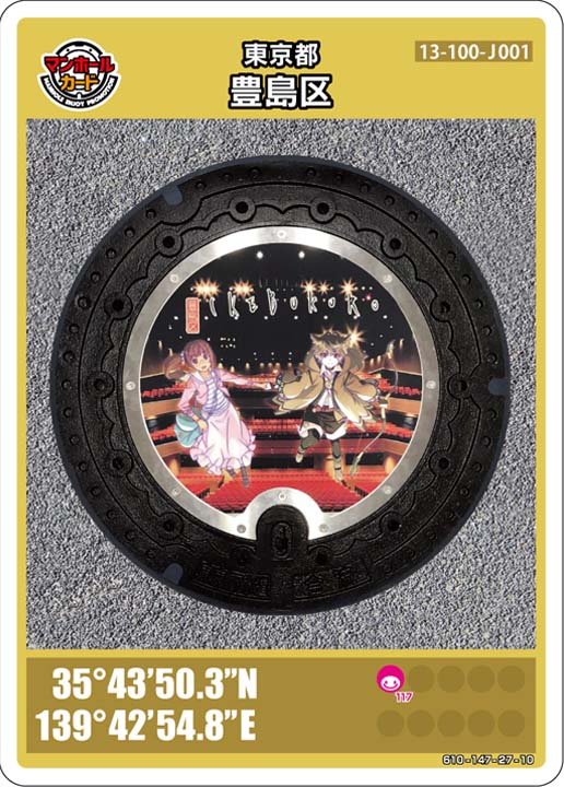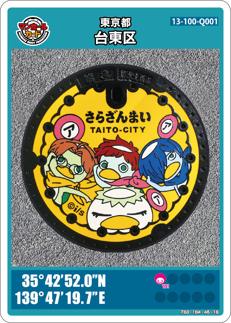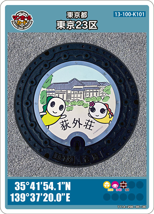 品川区![]() 35°36’25.1″N 139°44’03.9″E | しながわ観光協会 9:30~17:00 日・祝日 年末年始はお休みです 徒歩で4分 デザインマンホール8種類あり詳しくはこちら | サイト |