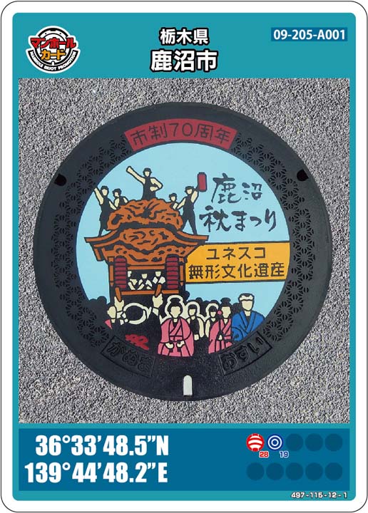 市町村→設置されてる市町村///デザイン→マンホールカードのデザイン///座標→設置場所