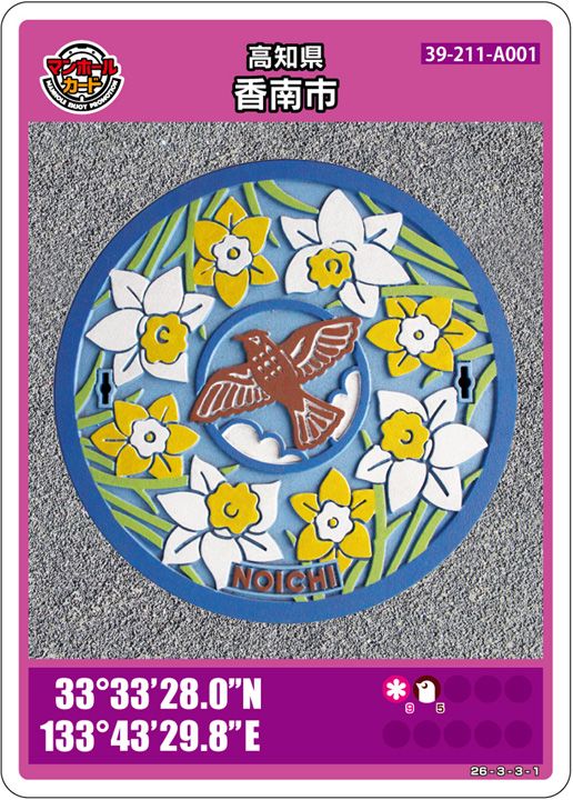 市町村→設置されてる市町村///デザイン→マンホールカードのデザイン///座標→設置場所