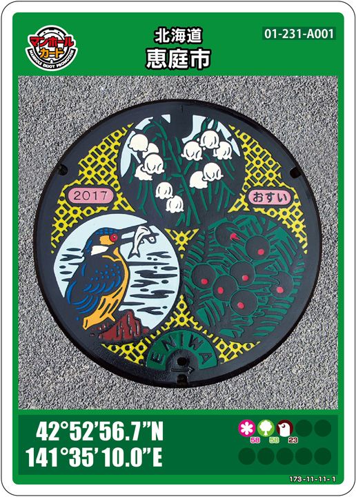 市町村→設置されてる市町村///デザイン→マンホールカードのデザイン///座標→設置場所