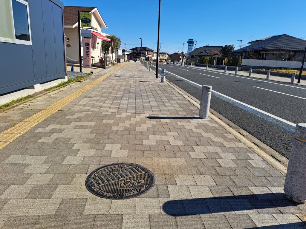 なっていますが歩道の青いポストの前あたりです