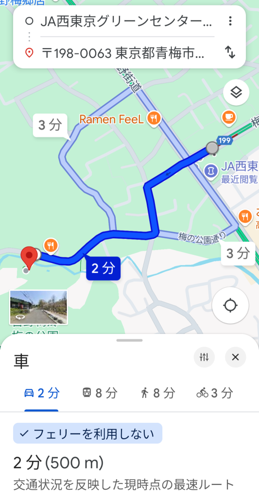 設置場所は車で2分ほどの