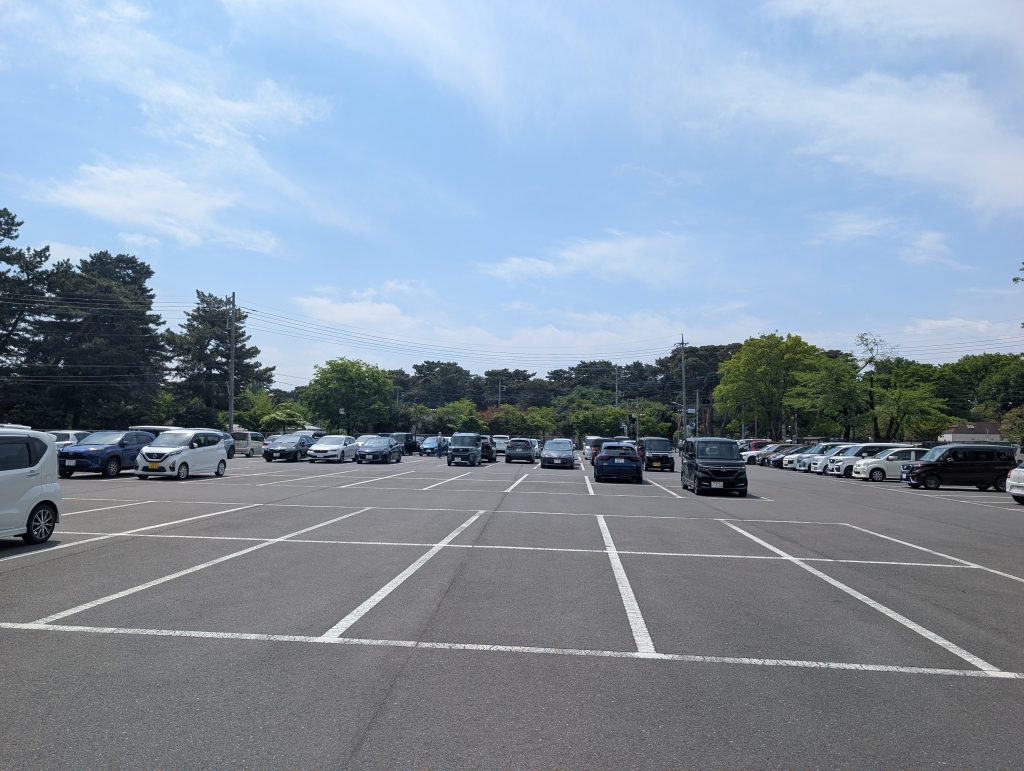 無料駐車場は広いですがそれ以上に車が多いです